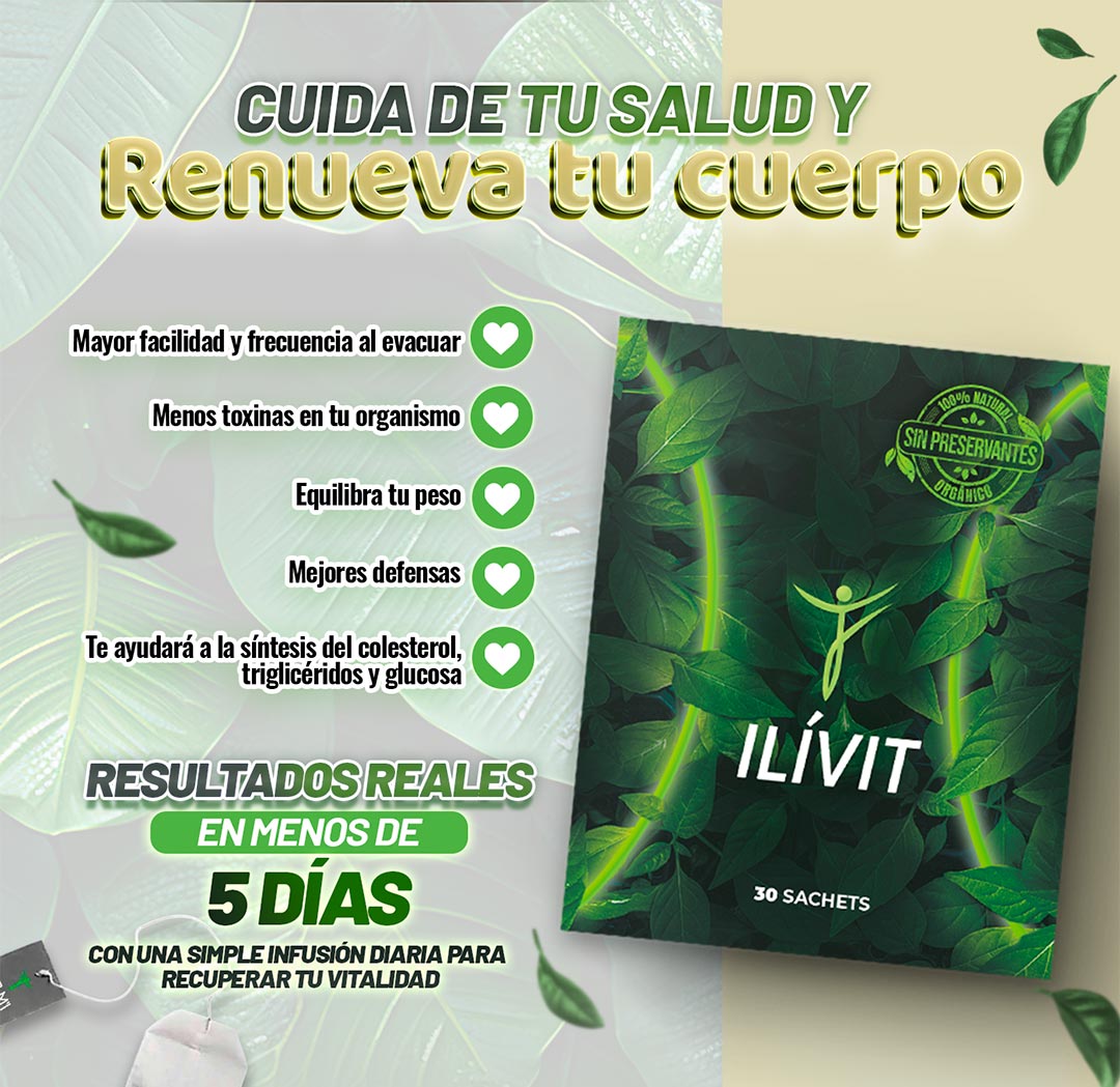 El ILÍVIT contribuye a optimizar el metabolismo y ayuda a la regulación del peso corporal al estabilizar los niveles de glicemia y del perfil lipídico, además gracias a su efecto diurético y laxante permite que el cuerpo saque el exceso de líquidos retenidos y materia fecal sobrante.